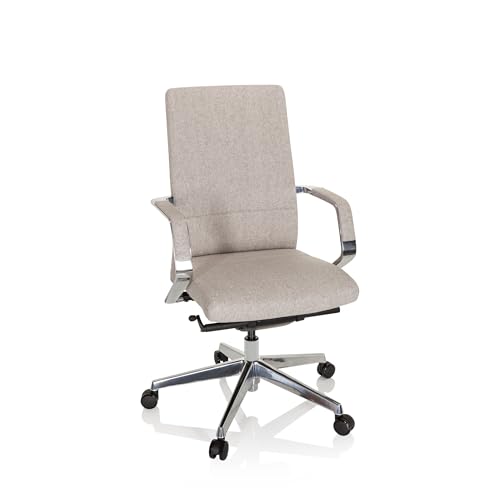 hjh OFFICE 601007 professionell kontorsstol BESSONA tyg beige designer snurrstol med armstöd, justerbart sittdjup, ergonomisk