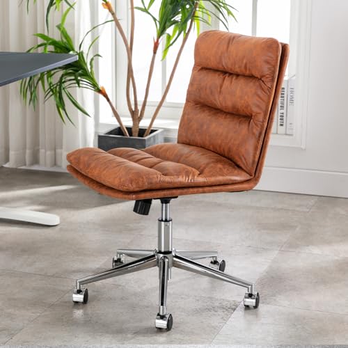 chairus Mjuk läder kontorsstol armlös ergonomisk svängbar höjd justerbar stoppad uppgiftsstol (brun (vilstol))