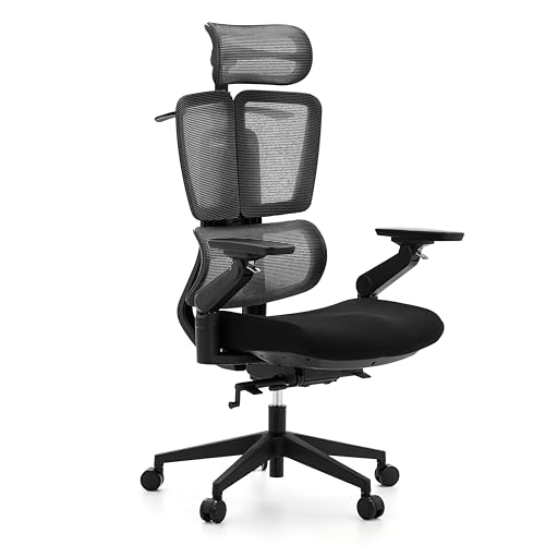 Oline ErgoPro Ergonomisk kontorsstol, rullande skrivbordsstol med 4D justerbart armstöd, 3D-ländryggsstöd, bladhjul, nät datorspel, verkställande svängbara stolar (svart)