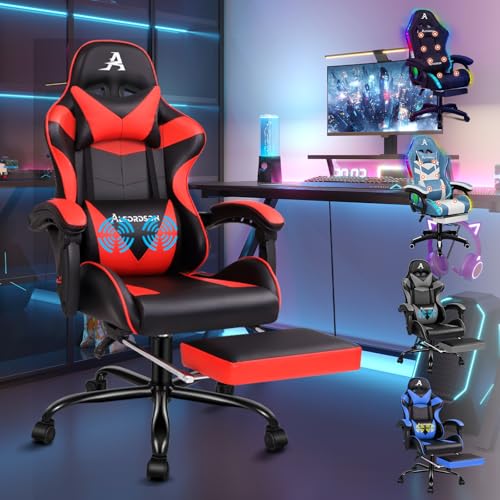 ALFORDSON Massagespelstol, 150° lutning, ergonomisk verkställande kontorsstol, PU-läder med fotstöd, justerbar höjd, tävlingsstol, 180 kg kapacitet, VOGLER, röd