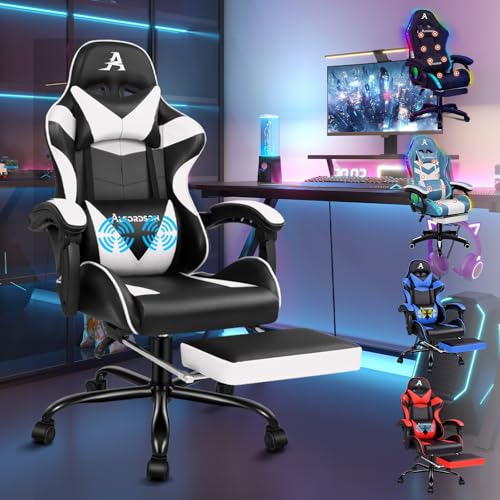 ALFORDSON Massage spelstol, 150° lutning, ergonomisk verkställande kontorsstol, PU-läder med fotstöd, justerbar höjd, tävlingsstol, 180 kg kapacitet, VOGLER, vit svart
