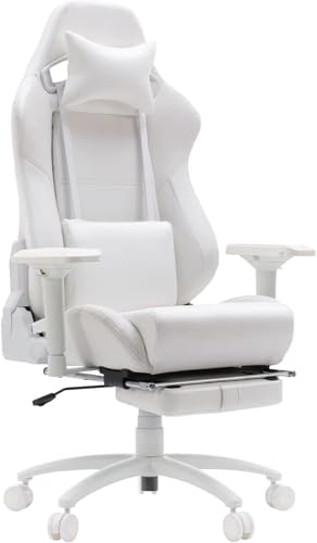 Spelstol, kontorsstolar för hem, ergonomisk kontorsstol med fotstöd och ländryggsstöd, spelstolar för vuxna, justerbar skrivbordsstol med 360° - svängbart säte för män kvinnor, present (vit)