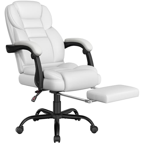 Misolant Ergonomisk kontorsstol med fotstöd, ergonomisk skrivbordsstol med justerbart 2D-ländryggsstöd, datorstol med hög rygg med justerbart nackstöd, vita bekväma kontorsstolar i läder