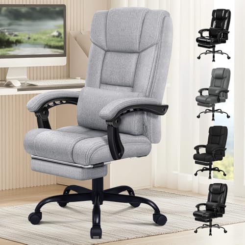 ALPHA HOME Kontorsstol ergonomisk kontorsstol med infällbart fotstöd hög rygg chefsstol dator hemmakontor stol 90–130° lutningsvinkel med 3D-armstöd, justerbart nackstöd, ländryggsstöd