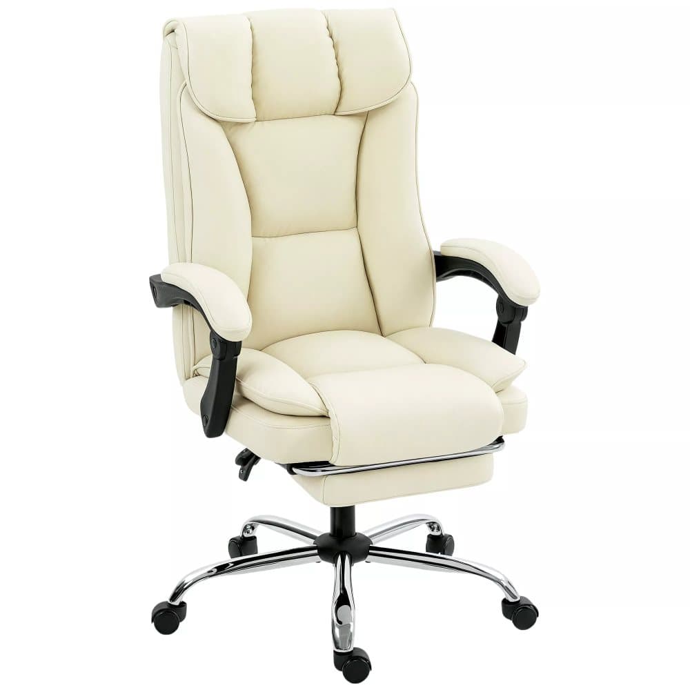 Ergonomisk kontorsstol - Snurrstol - Fotstöd - Hög tiltbar rygg - Tjock stoppning - Tåligt konstläder - Höjdjusterbar - Elfenbensvit