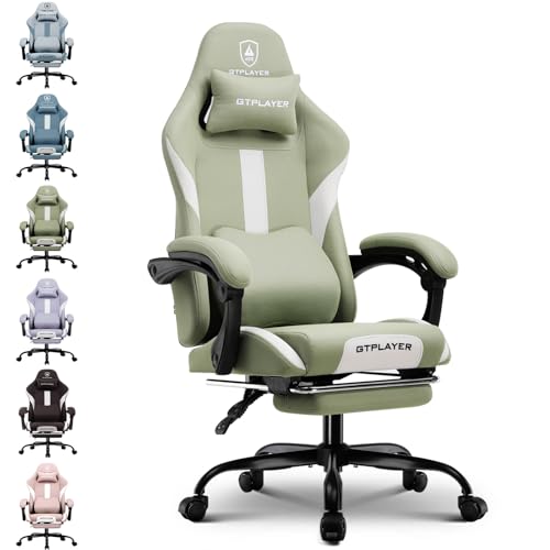 GTPLAYER Gamingstol, spelstol, andningsbar kontorsstol i tyg av hög kvalitet, ergonomisk PC-stol, justerbar och svängbar kontorsstol med fotstöd, Grön