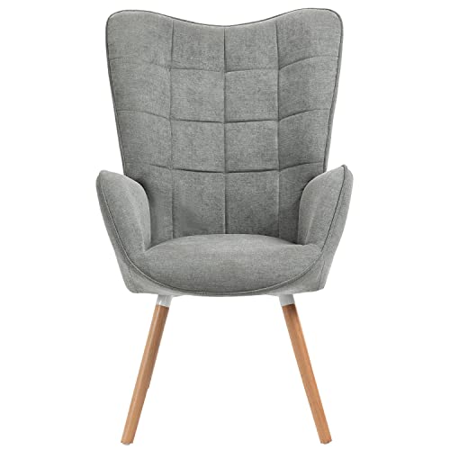 MEUBLE COSY, Grå Kontorsstol Skandinavien Vadderad Skrivbordsstol med Tyg Armstöd Högt Ryggstöd Trä Arbetsrum, 66 x 71 x 106 cm