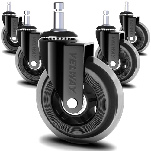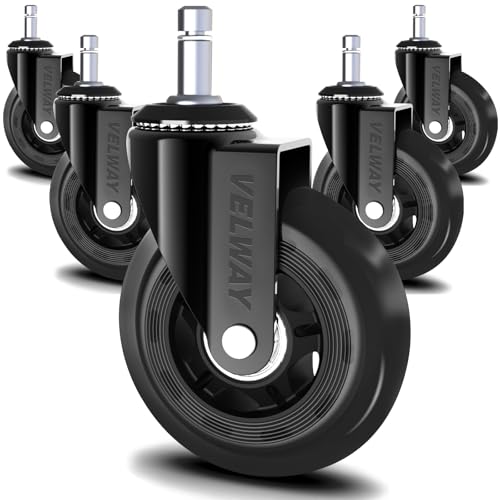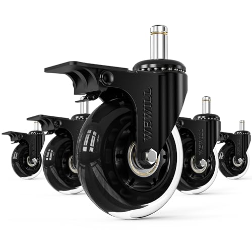 WEWILL Kontorsstolshjul stolhjul upp till 300 kg skrivbordsstol gummihjul hårda golv kontorsstol stolrullar, mycket tysta kontorsstolshjul set om 5 stycken 11 x 22 mm, inga repor i golvet svart/silver