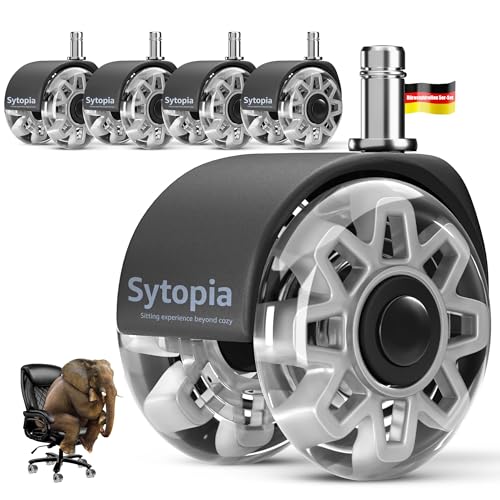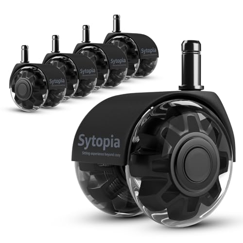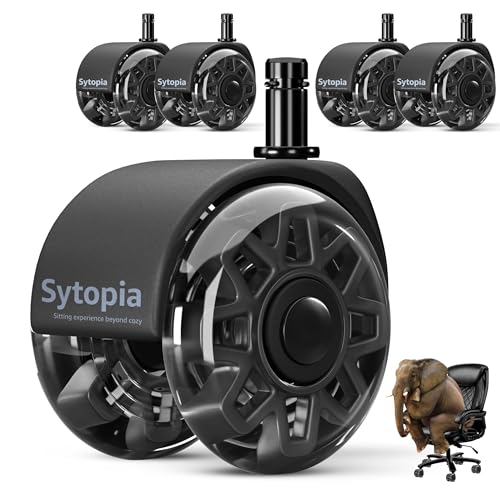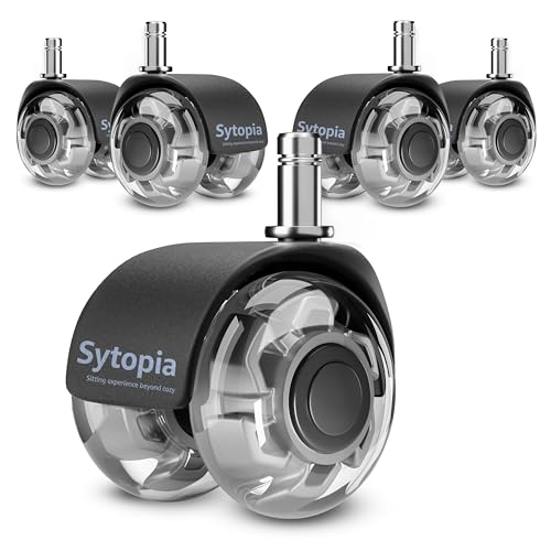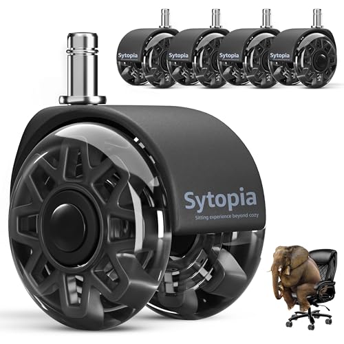 Sytopia Kontorsstolshjul 11 mm x 22 mm, set om 5 gummihjul för kontorsstolar, perfekta hjul för matta, hårda golv, parkett, lämplig för 99 % stolar (svart, inte för 1KEA)