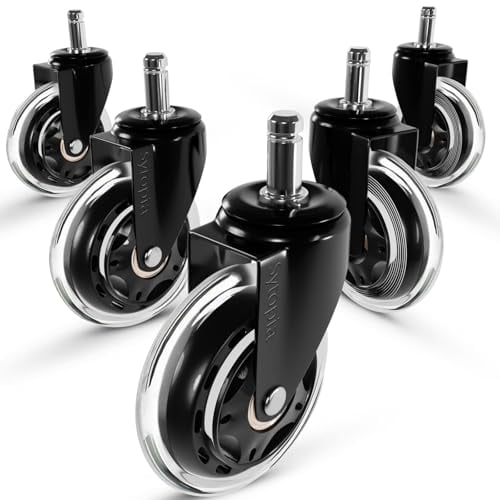 Foydream Kontorsstolshjul 5 st skrivbordsstolshjul för kontorsstolar, gummihjul kontorsstol, hjul på hårt golv, tysta stolrullar, reptålig, utan golvskyddsmatta, kontorsstolhjul, 11 mm x 22 mm