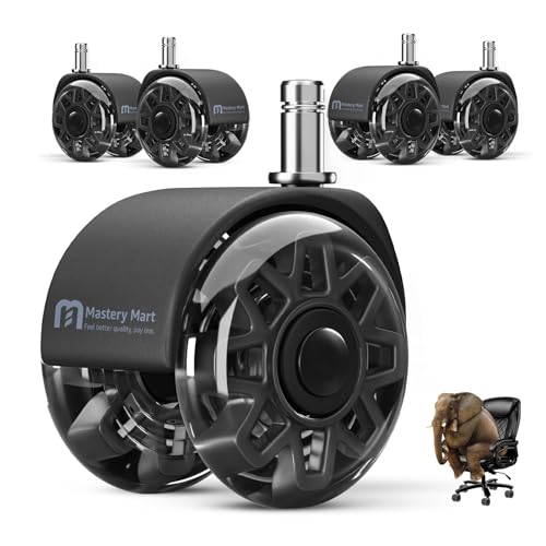 Mastery Mart Kontorsstolshjul set om 5, kontorsstolshjul 10 mm x 22 mm stift, hjul för hårda golv, ersätter golvskyddsmattor, lämplig för 1KEA, svart