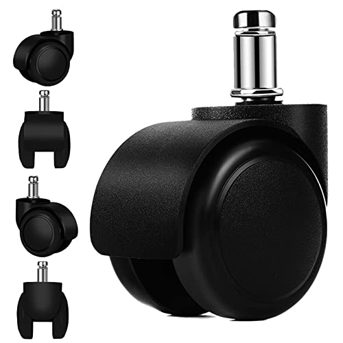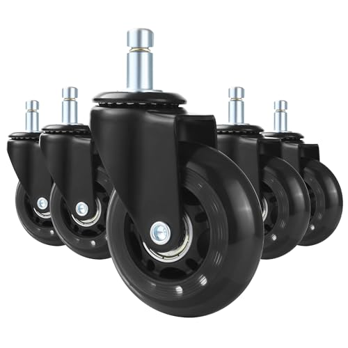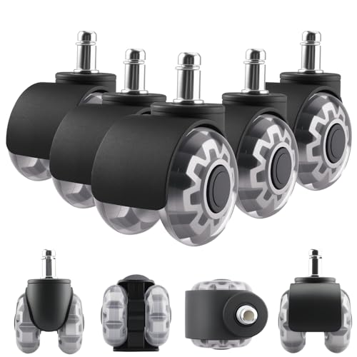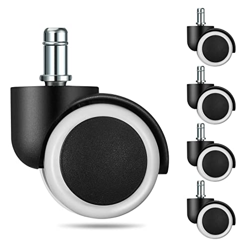 Kontorsstolshjul för matta – Set med 5 utbytbara hjul för kontorsstolar, golvsäkra på alla ytor (inklusive trägolv) – 2-tums gummi, smidiga och tysta, universell storlek (11x22 mm)