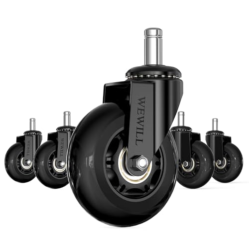 WEWILL Kontorsstolshjul 11 x 22 mm, släta och tysta hjul för hårda golv, skrivbordsstol, parkett, matta, laminat,skrivbordsstol för spelstolar, gummihjul, inga repor i golvet, 5 st