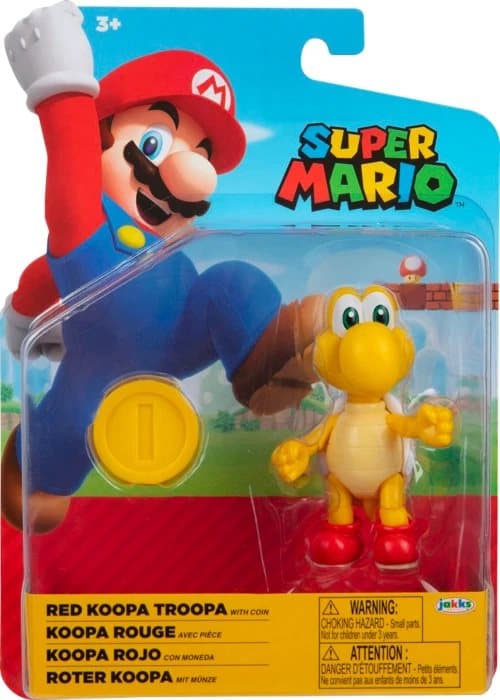 Super Mario Red Koopa Troopa 4" Toy Figure With Coin Accessory Nintendo WAVE25
