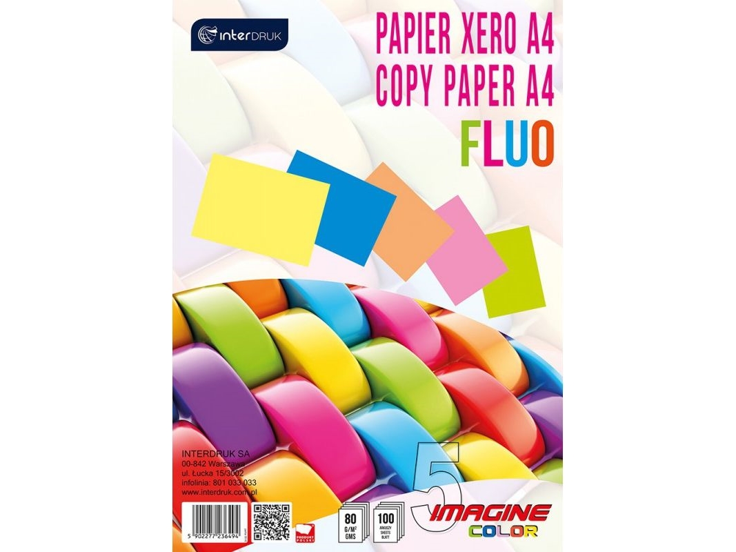 Interdruk Kopieringspapper A4 80 G Mix Fluo Färger 100 Ark