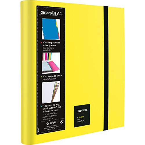 Grafoplás 88216061. Keppare, A4, Gul Fluor, 100 ark med 90 gram, 4 Extra Gess-separatorer, Transparent över, Karpeplus Unequal Fluor.