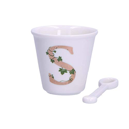 La White Porslin - Bokstav S kopp med sked - Heminredning, Kök - Unik linje - Presentidé - Porslin - 75 C; Ø 6,7; H6 cm
