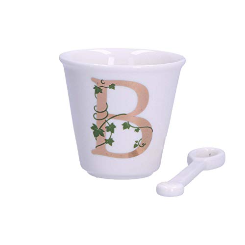 Det vita porslinet - Bokstav B kopp med sked - Heminredning, Kök - Unik linje - Presentidé - Porslin - 75 C; Ø 6,7; H6 cm