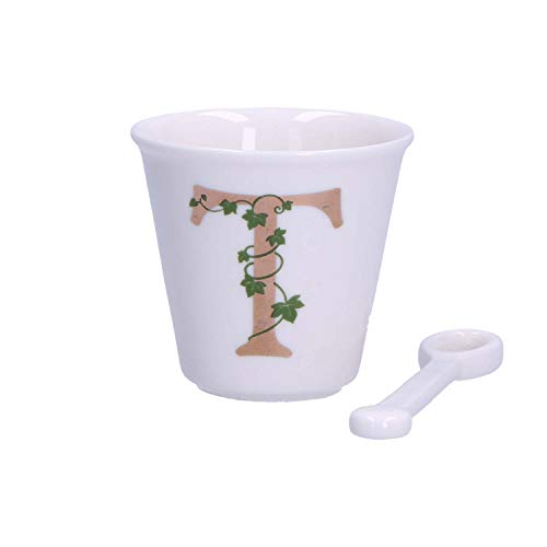 Det vita porslinet - Bokstav T kopp med sked - Heminredning, Kök - Unik linje - Presentidé - Porslin - 75 C; Ø 6,7; H6 cm