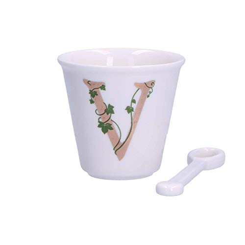 Det vita porslinet - Bokstav V kopp med sked - Heminredning, Kök - Unik linje - Presentidé - Porslin - 75 C; Ø 6,7; H6 cm