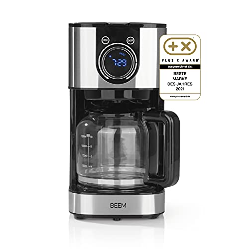 BEEM RESH-AROMA-SWITCH Filterkaffebryggare – glas | rostfritt stål | 1,25 l glaskanna | snygg kontrollhjul | 24-timmars timer | 800 W | för 4–8 koppar