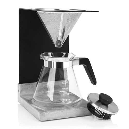 BEEM POUR OVER Kaffebryggarset – 4 koppar | permanent filter i rostfritt stål (storlek 2), 0,5 l glaskanna, betongbas | manuell kaffebryggkonst för en särskilt mild kaffesmak