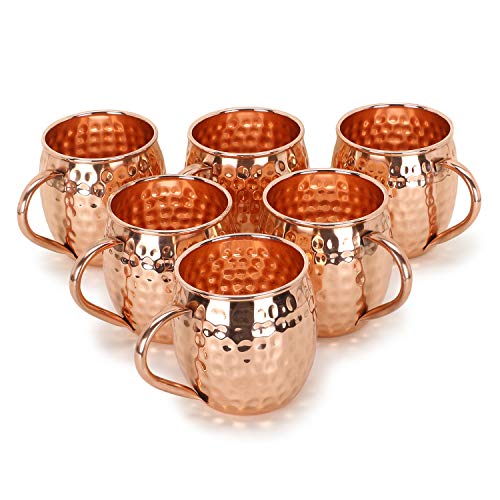 Moscow Mule koppar mugg för cocktails 540 ml set med 6 kopparpläterade rostfritt stål Moskva Mule koppar med handtag handgjorda presentset för kylda cocktails kalla drycker öl kaffevatten (6 pack)