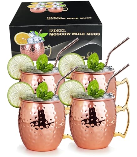 IZDEEL Moscow Mule-muggar koppar Mugs cocktailkopp, cocktailglas perfekta för gin, vodka, öl och kalla drycker, presentset, 4 x kopparkoppar