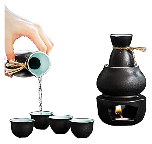 EdirFtra Keramisk sake-set, sake-set och koppar med varmare håll sake-förvaring, traditionellt porslinssake-set, inkluderar 1 spis, 1 värmeskål, 1 sake-flaska, 4 koppar
