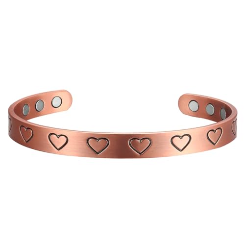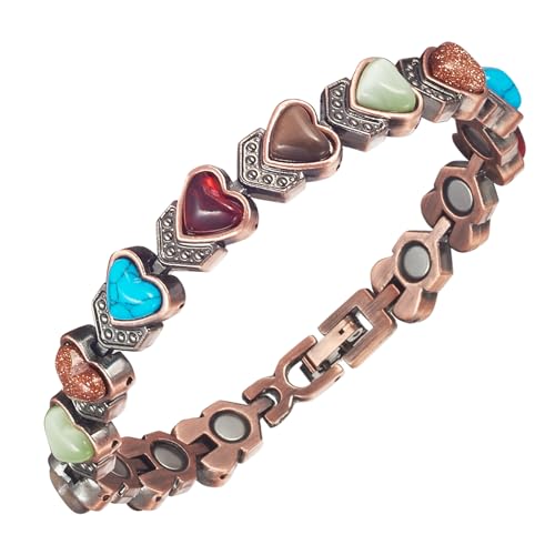 EnerMagiX Magnetiska armband i koppar för kvinnor, koppararmband med hjärtformad sten, justerbar längd, 21 centimeters, Sten Koppar