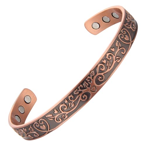 MagEnergy Koppararmband kvinnor 3 500 Gauss kraftfulla magneter 15 cm livets träd justerbar, Koppar