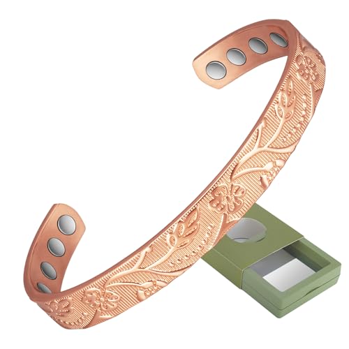 MagEnergy Koppararmband för kvinnor, magnetiska brasaleter med 3 500 magneter, justerbart storlek massivt koppararmband med storleksverktyg och presentförpackning för smycken (enkel), Metall