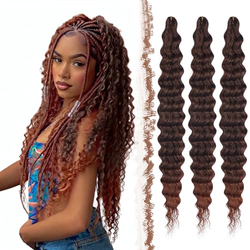FESHFEN Ocean Wave Virkat Hårförlängningar - 3 Stycken Vågiga Boho Virkade Flätor Vågigt Brun/kopparröd Hår Virka Flätning Förlängning Syntetisk Hårförlängning Hårstycke för Kvinnor, 55 cm