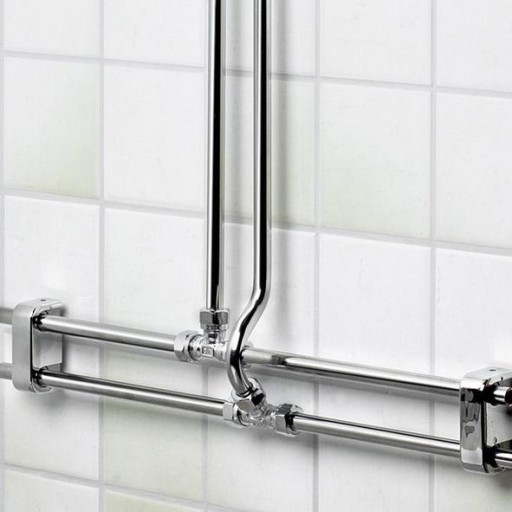 Mora Väggbricka . 12 mm rör, rostfritt udseende, doldFör lödfri anslutning av kopparrör, C/C 160 mm.