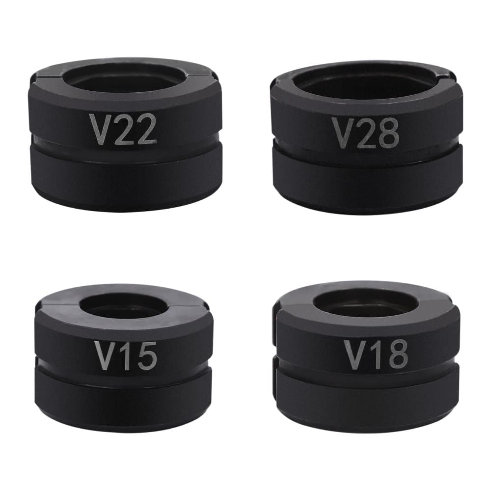 CR45-stål pressbackar - Sats V15/18/22/28 mm - För kopparrör - 4 delar - För hydraulisk press - Svart