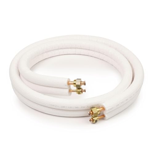 Idoneo Linea AC rör/värmepumpsrör – Flexibelt kylmedierör 1/4 + 3/8 tum, 1–25 m, dubbelt förisolerat kopparrör för luftkonditionering 9000/12000 BTU(5m, flarerad rör)