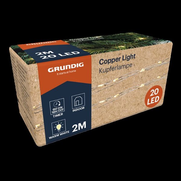 Grundig LED koppartråd 2 m / ljusslinga koppartråd 20 LED / dekorationsbelysning inomhus