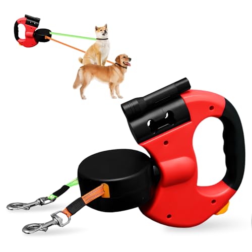 Dubbla Infällbara Hundkoppel för 2 Hundar Med Ljus - 3 m Utdragbart Koppel Med Bekvämt Ergonomiskt Handtag