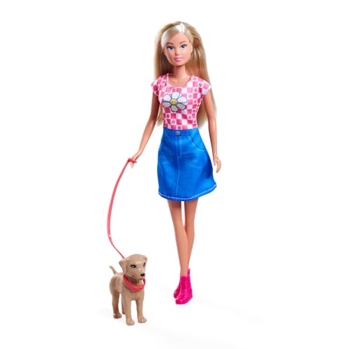 Simba Steffi Love Dog Fun – Modedocka med hund och koppel, 29 cm, hundpromenad i rollspel för barn från 3 år