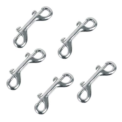Huture 5-pack 3,5 tum dubbel ände bult knäppning krok zinklegering utlösare kedja metallklämmor nyckelhållare för vattenhink husdjursmatare jordbruks hästdjur hem hund koppel garage användning, nickelpläterad, silver