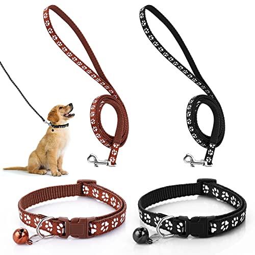 Molain Set med 2 st hundhalsband och koppel, justerbart husdjur hund katt halsband med koppel snabbfrigörande klämma spänne halsband för liten hund katt valpar kattungar (svart + brun)
