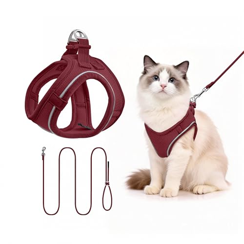 Qianruida Sele och koppel för Liten Hund Anti-Drag Justerbar Reflekterande Valp Katter Andningsbar Mjuk Meshväst för Promenad, Löpning, Träning (Vinröd S)
