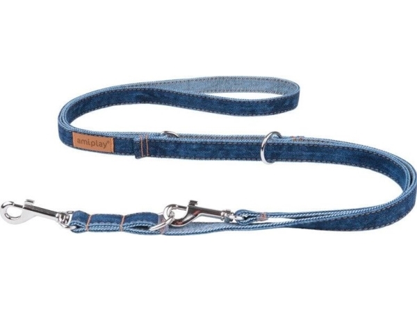 Amiplay Amiplay - 6 I 1 Justerbart Koppel För Hund, Jeans Denim, Storlek S, 100-200 Cm X 1 Cm Marinblå