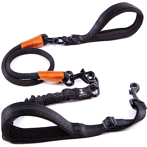 Premium bungee-rep koppel för dragande hund – stötdämpande anti-drag hundkoppel för medelstora och stora hundar med vadderade handtag, reflekterande sömmar och inget trassel