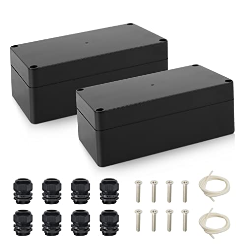 QLOUNI 2 stycken väggmonterad kopplingsdosa IP65 vattentät 158 × 90 × 60 mm ABS elektrisk projektlåda svart fördelningsbox