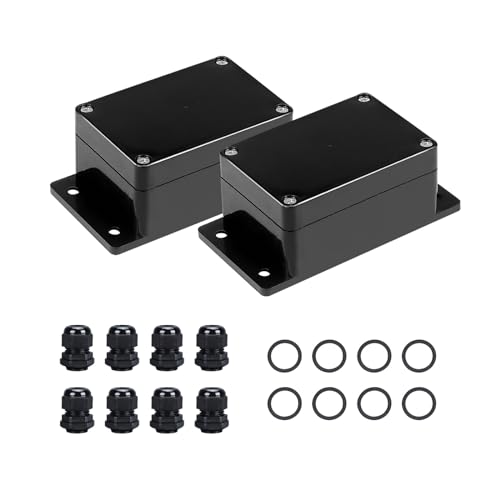 Therlan kopplingsdosa svart vattentät IP65, 2 stycken elektronikhölje ABS plasthölje anslutningsdosa IP65 kopplingsdosa liten svart distributionsbox utomhus vattentät (100 x 68 x 50 mm)