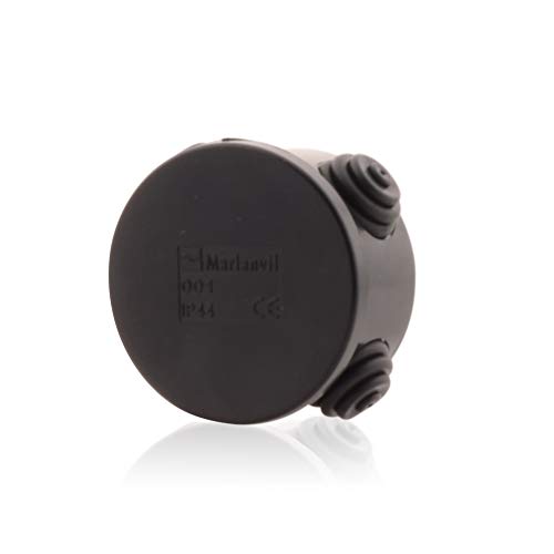 Kopplingsdosa rund kabelkopplingsdosa ytmonterat installationshus med stegnipplar i svart, IP44, 65x35mm, vattentät kopplingsdosa lämplig för utomhusbruk