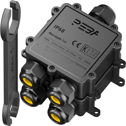 PEBA® IP68 Vattentät kopplingsdosa, 4-vägs kopplingslåda, utomhus vattentät Kabelkontakt, anslutningsbox, kopplingsdosor, fördelningsdosa, kabelanslutning för Ø 4 mm till 14 mm kabel, svart
