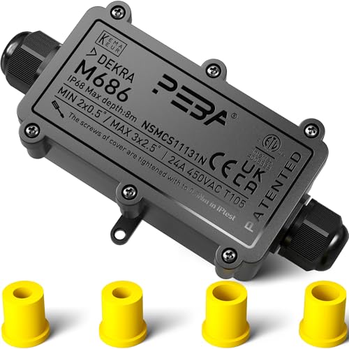 PEBA® IP68 Vattentät kopplingsdosa, 3-vägs kopplingslåda, utomhus vattentät Kabelkontakt, anslutningsbox, kopplingsdosor, fördelningsdosa, kabelanslutning för Ø 4 mm till 14 mm kabel, svart fyra pack