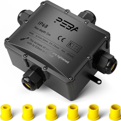 PEBA® IP68 Vattentät kopplingsdosa, 6-vägs kopplingslåda, utomhus vattentät Kabelkontakt, anslutningsbox, kopplingsdosor, fördelningsdosa, kabelanslutning för Ø 4 mm till 14 mm kabel, svart
